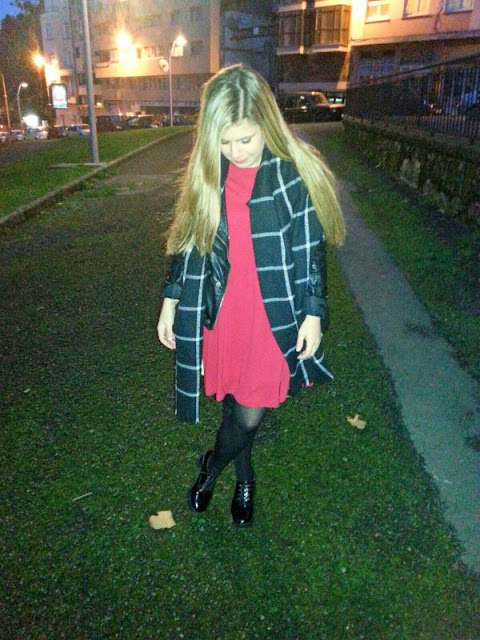 Bueno hoy os traigo mi outfit de nochebuena. Creo que las prendas de color rojo son todo un acierto en estas fechas. Ideales para cualquier celebración o evento. Este vestido plisado me resulta muy cómodo. Tiene una caída que me encanta y es bastante largo, justo por encima de las rodillas. Me gusta mucho porque es sencillo pero bastante elegante a la vez. En este caso lo he conjuntado con una biker de cuero negra. También lo pongo muchas veces con una americana overside. Decidí añadir mis zapatos tipo Oxford y una bufamanta de cuadros.