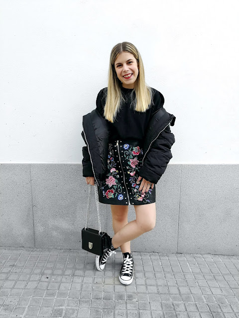 Tendencia a prueba: personalmente hay muchas prendas bordadas que llaman mi atención cuando visito las tiendas. He de decir que hay bordados y bordados y es normal que no todos se adapten a nuestros gustos. Las flores normalmente me gustan mucho sobretodo en faldas y pantalones vaqueros. También en chaquetas tipo bomber me parecen muy especiales.